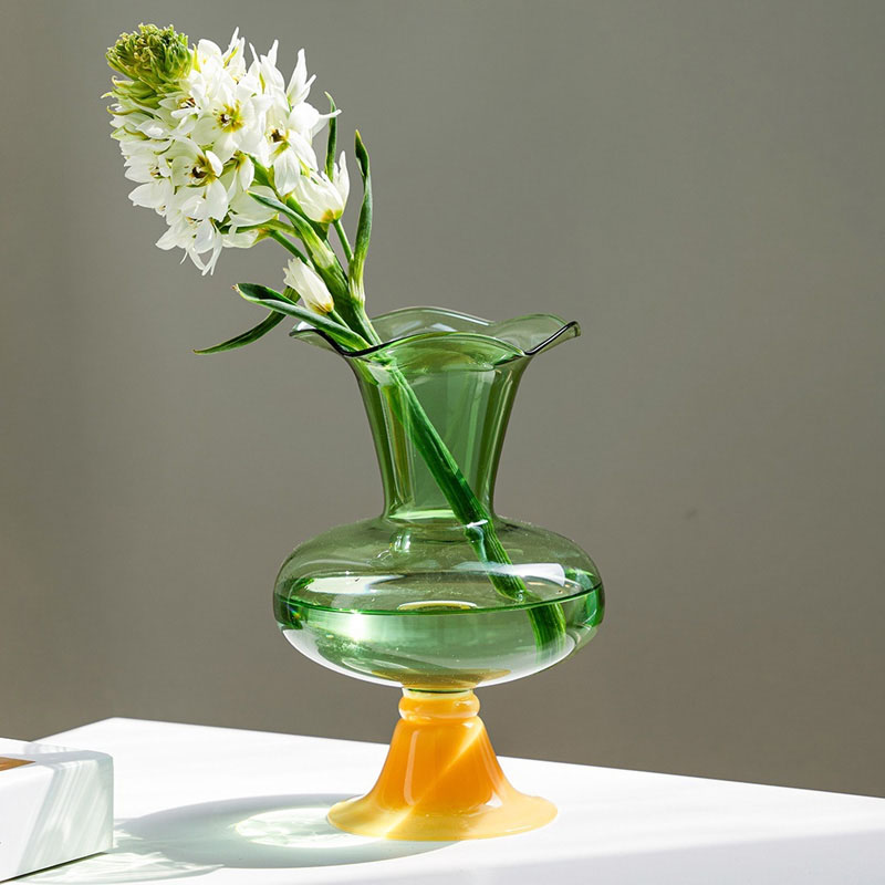 Lotus Leaf Edge Retro Flower Arrangement Glass Vase